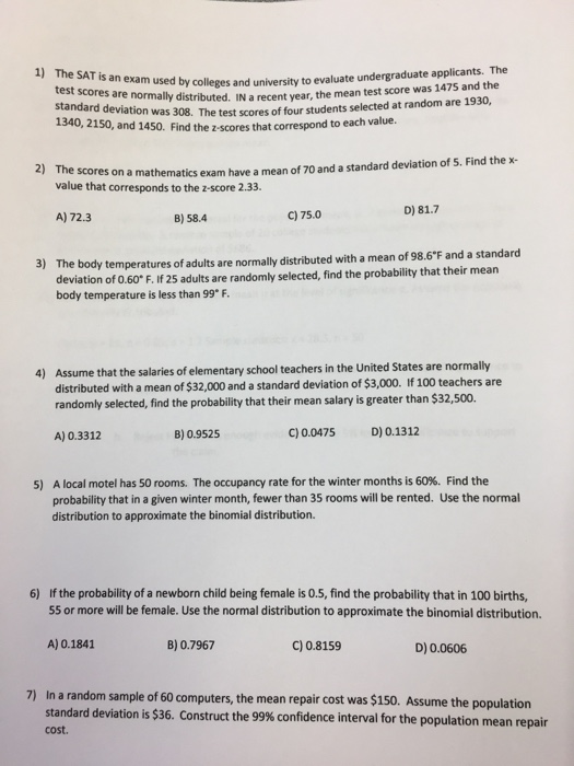 Solved The Sat Is An Exam Used By Colleges And University